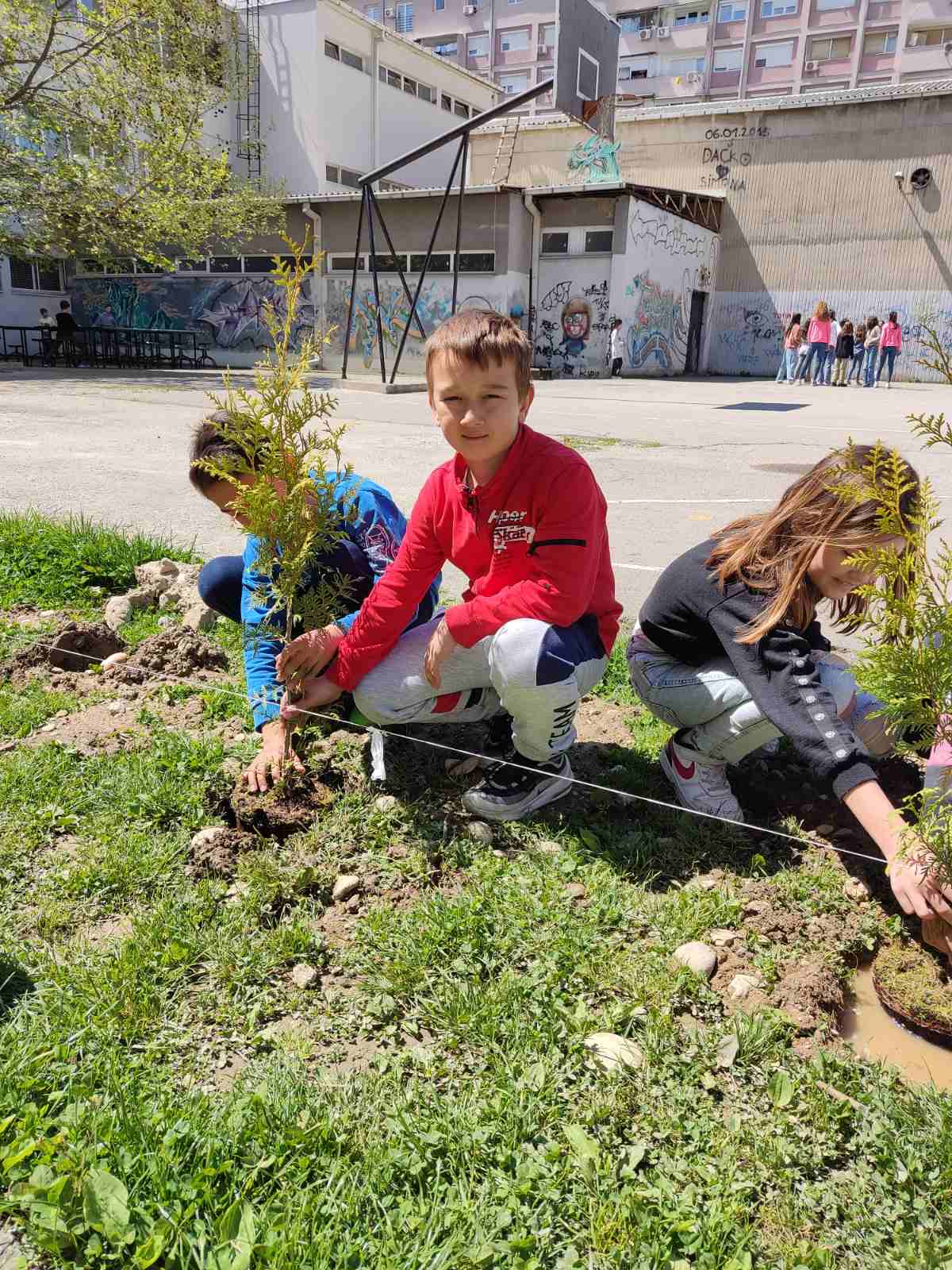 Голема благодарност до родителот Марјан Костадиновски за донираните садници дрва кои заедно со нашите ученици ги засадија во училишниот двор, со што ни се раззелени училиштето. Благодарност и чест е да се има родители со големо срце, кои безрезервно училиштето го гледаат како втор дом на нивните деца.