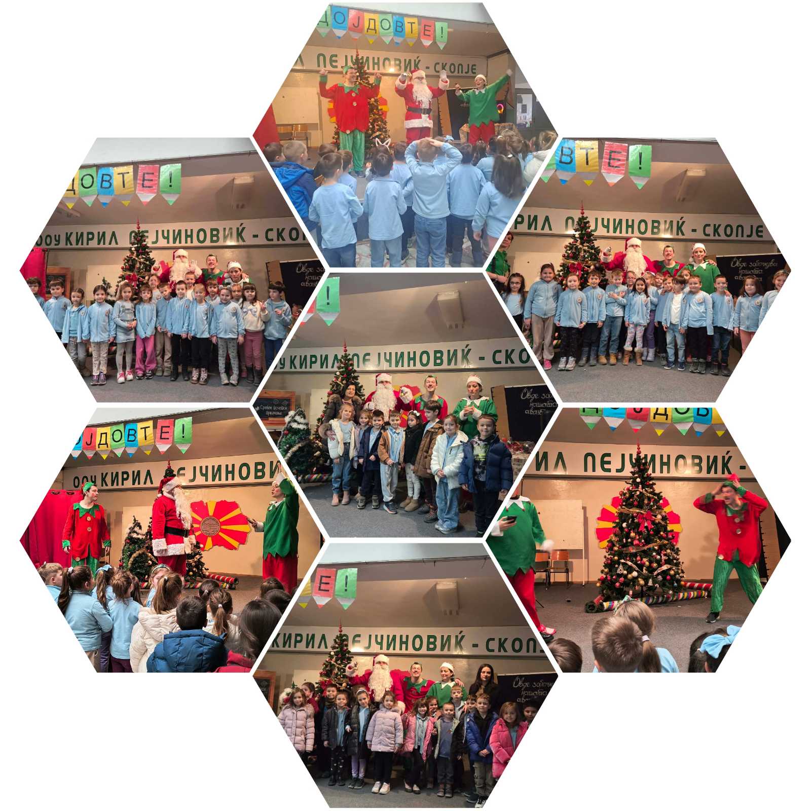 Денес беше проследена интерактивната детска претстава „Елфовите и Дедо Мраз“со учениците од прво одделение. Претставата се одвиваше во весела и празнична атмосфера, при што учениците активно учествуваа со песна и игра. Со голема радост го пречекаа Дедо Мраз, кој им упати топли честитки и им посака среќни и успешни новогодишни празници.